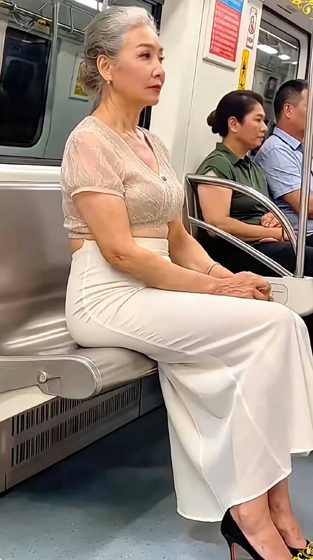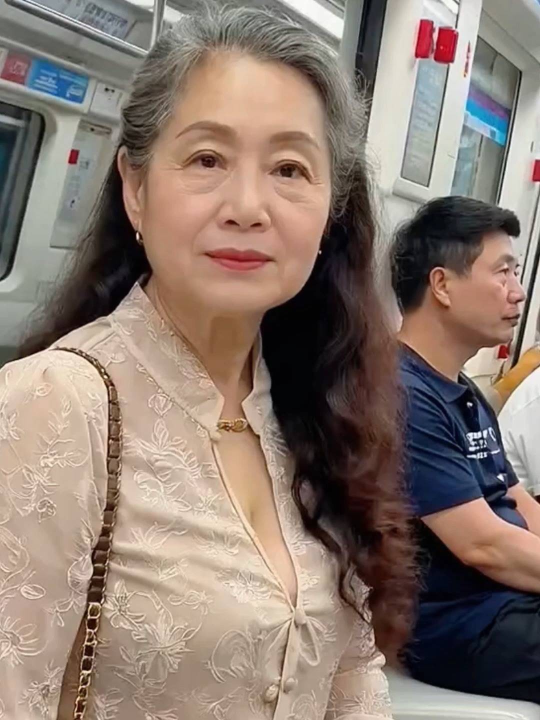 地铁门“叮”地弹开,我刚站稳就被斜前方的身影勾住了视线。那位阿姨穿着米白色针织开衫,头发松松挽成髻,几缕碎发垂在脸颊边——不是小姑娘那种扎眼的漂亮,是像老茶回甘似的韵味,连扶着扶手的手指都涂着豆沙色指甲油。我盯着她耳后那串珍珠耳坠发呆,冷不丁对上她转过来的目光,吓得差点把手机掉进地铁缝里。她居然没移开视线,反而弯了弯眼睛,嘴角还带着点揶揄的笑意。空气突然凝固,车厢里报站的广播都变得像慢镜头。 周围的乘客好像都没注意这场小型社死现场。我脑子里闪过十个逃跑方案:假装看窗外广告?突然低头系鞋带?或者学旁边大爷掏出报纸挡脸?正纠结时,阿姨居然朝我这边挪了挪,手里拎着的帆布包上还别着个猫咪徽章。“小伙子,”她声音像刚沏好的龙井,“你老盯着我珍珠看,是觉得它假吗?”我脸“腾”地红到耳根,结结巴巴说:“不、不是,阿姨您这珍珠……特别亮。”她被逗笑了,从包里摸出颗水果糖塞给我:“算你会说话。我家小孙子也总偷瞄我新烫的头发,跟你这眼神一模一样。”